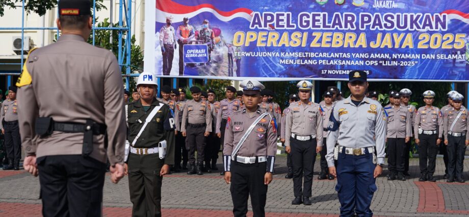 Kabupaten Bekasi – Polres Metro Bekasi menggelar Apel Pasukan Operasi Zebra Jaya 2025 pada Senin, 17 November 2025, bertempat di Lapangan Promoter Polrestro Bekasi. Kegiatan yang dimulai pukul 08.00 WIB ini dipimpin Wakapolres Metro Bekasi, AKBP Apri Fajar Hermanto, S.I.K., serta dihadiri para Pejabat Utama, Kapolsek jajaran, personel Polres Metro Bekasi, dan unsur gabungan TNI serta Dinas Perhubungan.