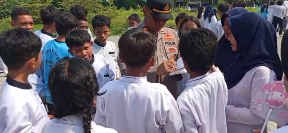 Bekasi,mascipol.id – Kapolsek Serang Baru, AKP Hotma P Sitompul, S.H., M.H., bersama Bhabinkamtibmas Desa Sirnajaya, Aipda Nanang, melakukan kegiatan police goes to school di SMPN 3 Serang Baru pada Rabu (8/10/2025).