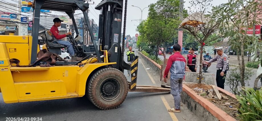 CIKARANG UTARA — Unit Lalu Lintas Polsek Cikarang Utara bersama Satlantas Polres Metro Bekasi menutup putaran balik liar (u-turn ilegal) di Jalan RE Martadinata, Cikarang Utara, Kamis (24/4/2026). Penutupan dilakukan sebagai upaya mencegah kecelakaan lalu lintas dan meningkatkan keselamatan pengguna jalan.