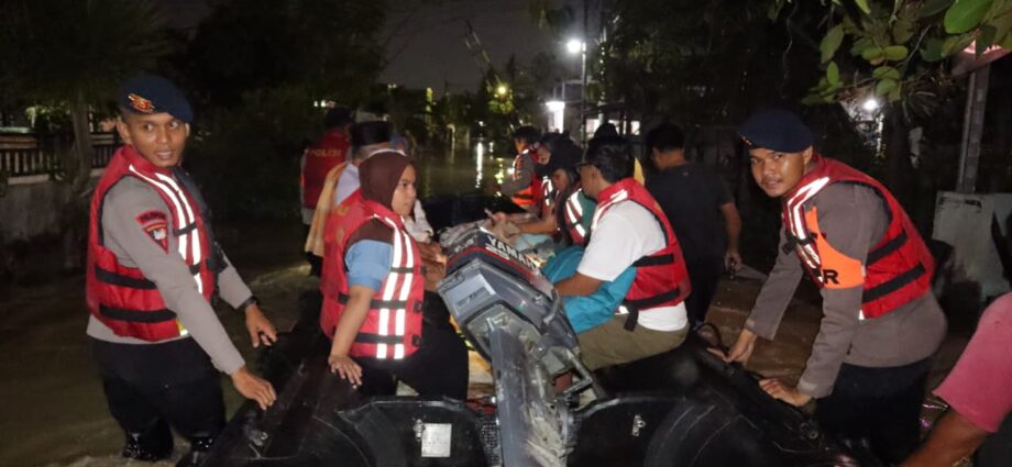 Menindaklanjuti kondisi tersebut, personel Satuan Samapta Polres Metro Bekasi bersama Tim SAR Brimob Den-D bergerak cepat melakukan evakuasi warga terdampak. Kegiatan evakuasi dimulai sekitar pukul 20.00 WIB di bawah pimpinan IPTU Untung Purwoko selaku Kasubnit-2 Unit Dalmas Sat Samapta, bersama AKP Sugito dari Brimob Den-D dan Brigpol Mysumbi dari Sie Humas Polres Metro Bekasi.