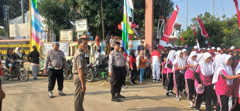 Polsek Cibarusah Polres Metro Bekasi Amankan Kegiatan Perlombaan Gerak Jalan dalam Rangka Hut RI ke-80