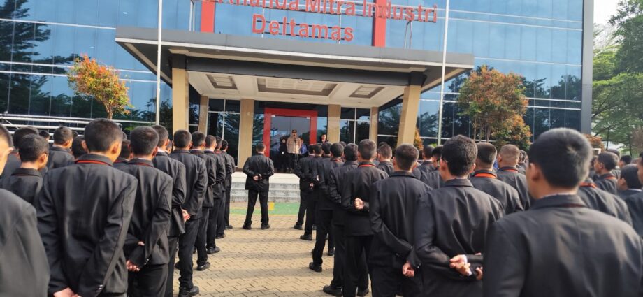 Kapolsek Cikarang Pusat, AKP Elia Umboh, SH, MH, memberikan arahan kepada siswa-siswi SMK Ananda Mitra Industri Deltamas tentang pentingnya memiliki integritas, dedikasi, dan loyalitas.