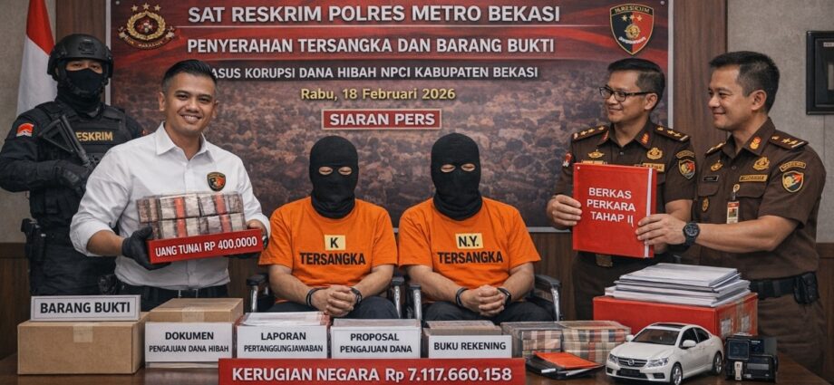 Bekasi,mascipol.id – Satuan Reserse Kriminal Polres Metro Bekasi, jajaran Polda Metro Jaya, melaksanakan penyerahan tersangka dan barang bukti (Tahap II) dalam perkara dugaan tindak pidana korupsi penyalahgunaan dana hibah yang bersumber dari APBD dan APBD Perubahan Kabupaten Bekasi Tahun Anggaran 2024 untuk kegiatan National Paralympic Committee Indonesia (NPCI) Kabupaten Bekasi pada Rabu, (18/02/2026).