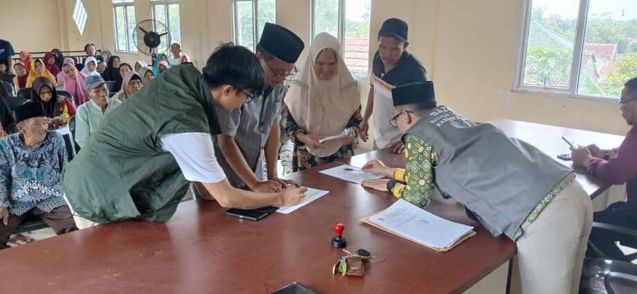 Acara ini berlangsung pada hari Sabtu, 29 Maret 2025, dan dihadiri oleh Ali dari BAZNAS Pemda Bekasi, Yayat Nurhidayat, Kasi Kesejahteraan, serta perangkat desa lainnya.
